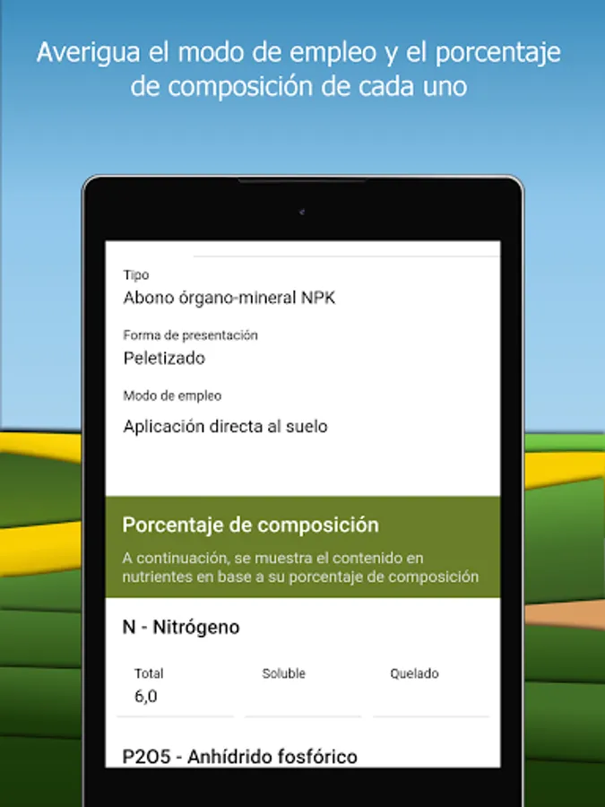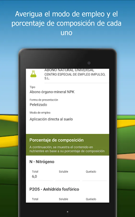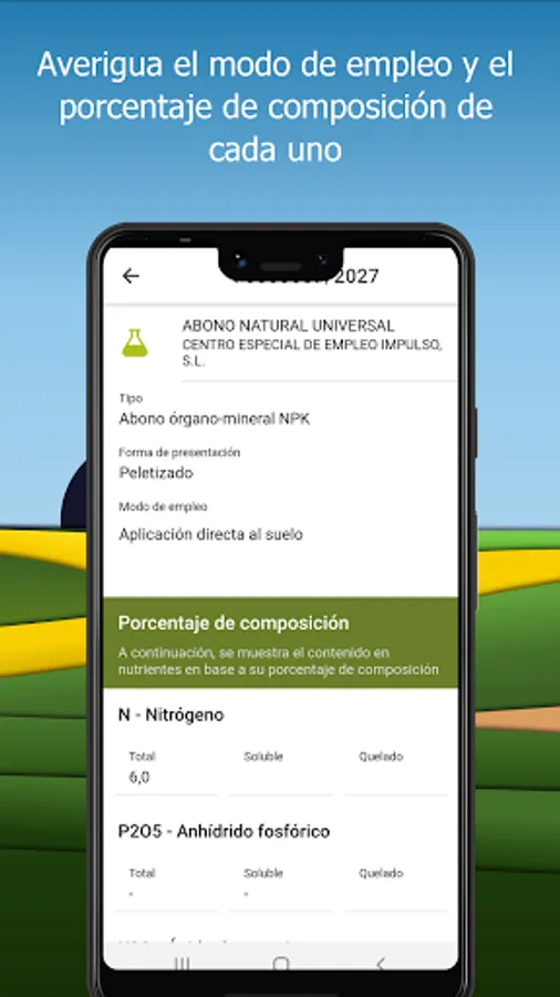 You will also be able to consult information about the fertilizer products published by this same entity, among which the manufacturer and the composition percentages of the same stand out.