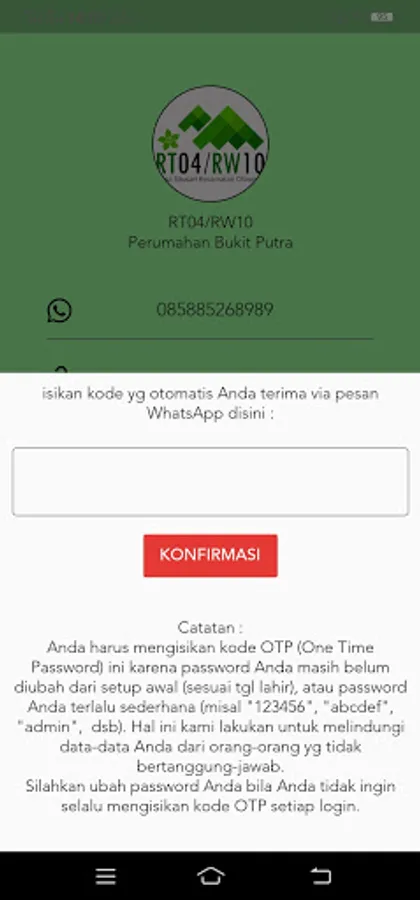 This application is devoted to residents of RT04/RW10, Bukit Putra Housing, Siteari, Cileungsi, Bogor Regency, for real-time and interactive communication and information media between residents and administrators.