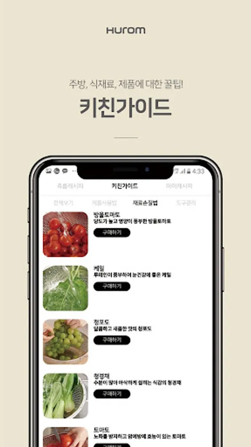 Information on kitchen utensils, ingredients, Hurom products and tips