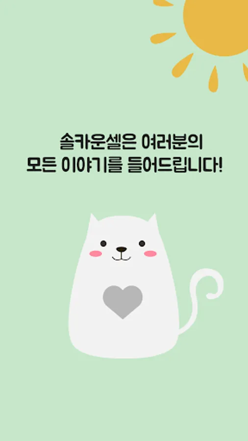 솔카운셀은 SNS(Social Network Service)를 기반으로 정신건강 문제에 대해 서로의 고민을 함께 나눌 수 있는 온라인 공간을 제공하는 업체입니다. 또한 SNS를 사용하는 고객들 중 전문적인 정신건강 상담을 요청하시는 분들에게 저렴한 가격으로 한국의 정신건강전문가들로부터 전문상담을 받을 수 있는 서비스를 제공합니다. 실제적인 전문상담을 제외한 모든 서비스들(자가 검진, 정신장애 진단기준 확인, SNS 사용, SNS 상의 전문가 코멘트, 포인트 적립 및 활용 등)은 무료이며 전문상담은 온라인 채팅, 전화 상담, 대면 상담 가운데 고객의 선택으로 구매하실 수 있습니다. 솔카운셀은 정신건강전문가가 운영을 하며 한국의 공공과 민간영역, 대학에서 일하는 전문가들이 상담사로 활동하며 웹 싸이트로도 사용가능합니다.
