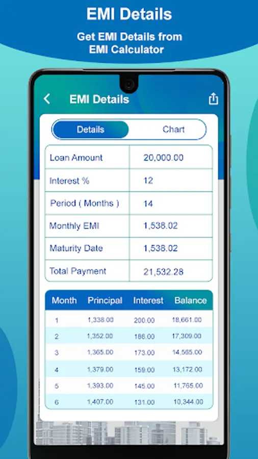 You can quickly view the full EMI payment schedule and share the chart as a PDF/EXCEL for free as well as get EMI Calculator.