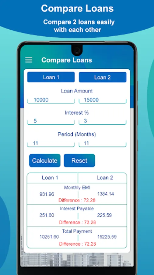 Let's download and use this EMI calculator app to give all kinds of financial loan calculations.