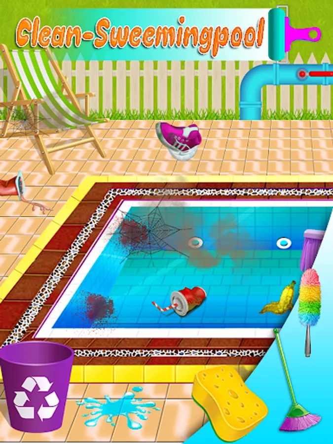 Swimming Pool is so dirty you need to remove unused things into the dust.