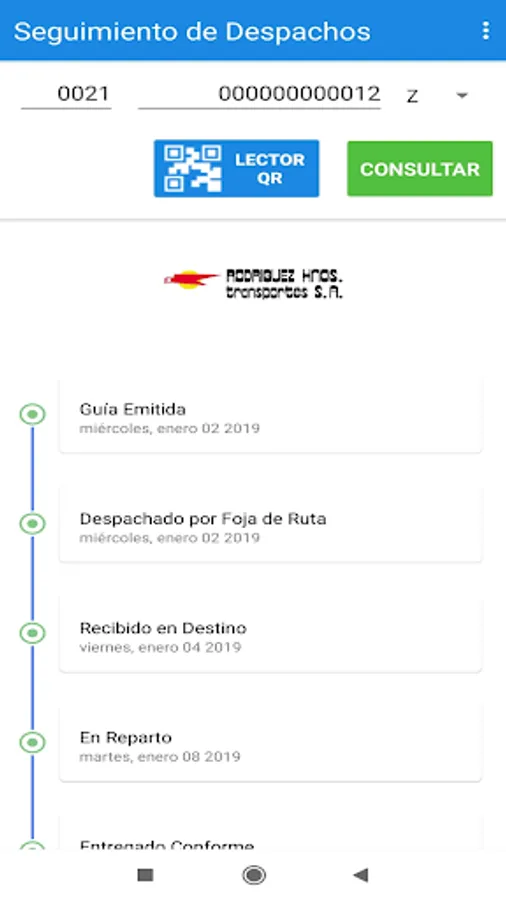 You must use the Tracking ID provided by the dispatching company, reading the QR Code or entering it manually in the application.