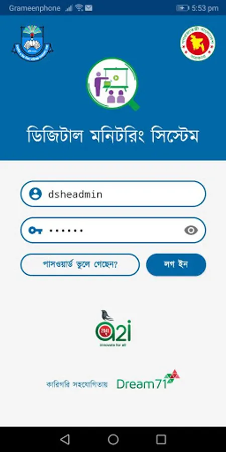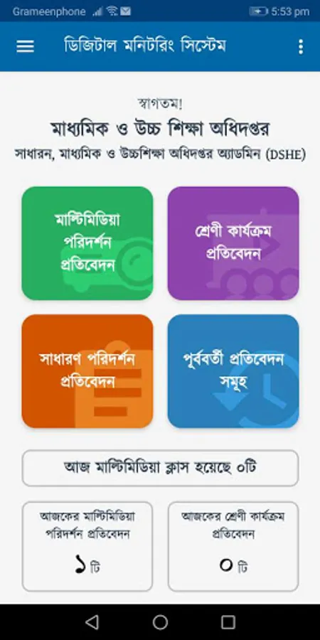 "Multimedia Classroom Monitoring App" is a joint initiative of "Prime Minster's office's Access to Information (a2i)", "Ministry of Education" and "Ministry of Primary & Mass Education" of Bangladesh. It's primary goal is to ensure the proper use of multimedia in the study materials in primary, secondary and higher secondary level of education. Now around 25000 multimedia enabled classroom across the country can be monitored conveniently using this app. The specialty of this app is the user friendliness. Teachers can capture the photo of an ongoing class and send it to their reporting authority. The auditors can find it along with the time and the GPS location of the photo captured. In addition, field level education officers can visit a classroom and submit the qualitative evaluation report to their higher officials with this app.