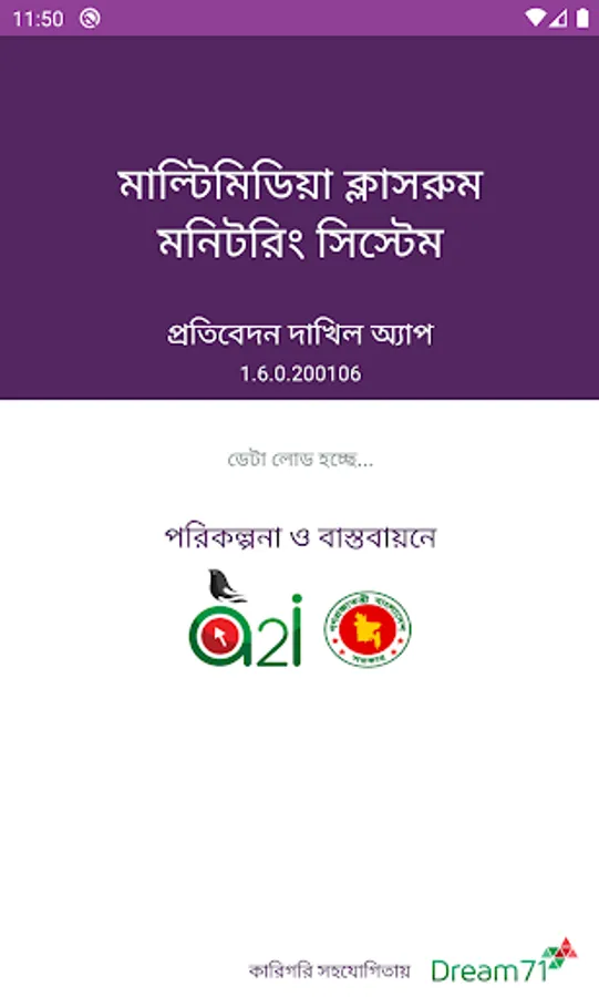 "Multimedia Classroom Monitoring App" is a joint initiative of "Prime Minster's office's Access to Information (a2i)", "Ministry of Education" and "Ministry of Primary & Mass Education" of Bangladesh. It's primary goal is to ensure the proper use of multimedia in the study materials in primary, secondary and higher secondary level of education. Now around 25000 multimedia enabled classroom across the country can be monitored conveniently using this app. The specialty of this app is the user friendliness. Teachers can capture the photo of an ongoing class and send it to their reporting authority. The auditors can find it along with the time and the GPS location of the photo captured. In addition, field level education officers can visit a classroom and submit the qualitative evaluation report to their higher officials with this app.
