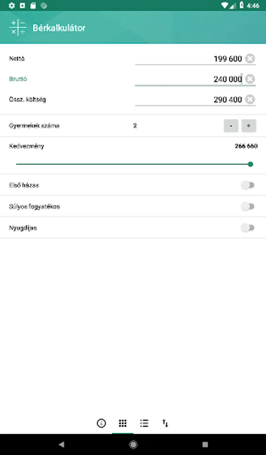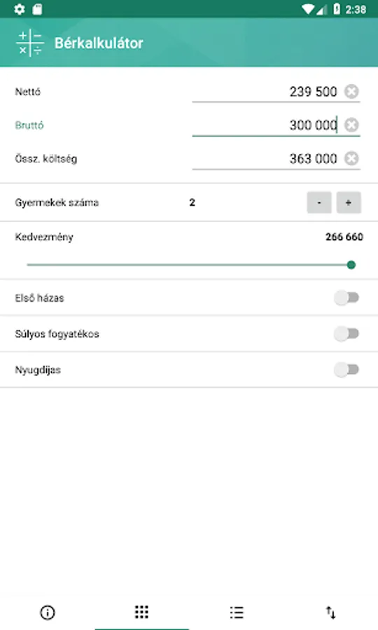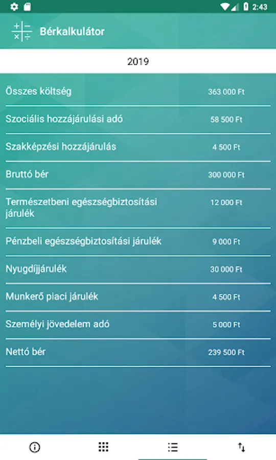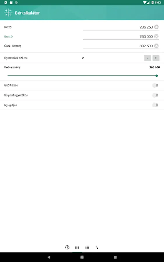 Felhívjuk figyelmüket, hogy a kalkulált adatok tájékoztató jellegűek, a kalkuláció nem helyettesíti a hivatalos számfejtést!