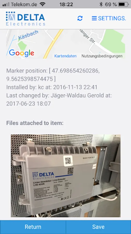 ScanApp from DCT-DELTA is the frontend for installers to document the location, used equipment, and network connection diagram to other equipment in a cable network. It can be used for active and passive devices, RF amplifiers or RFoG nodes and can check automatically multiple used upstream wavelengths. In addition, environmental photos after finishing installation on site can be uploaded to the backend server. Because of the automatic scanning of QR codes used by DCT-DELTA units, and easy inventory and function assignment is included, but all kind of components can be inserted also by manual text entry. For functional usage a backend server is required. Please get in contact with DCT-DELTA, in case.