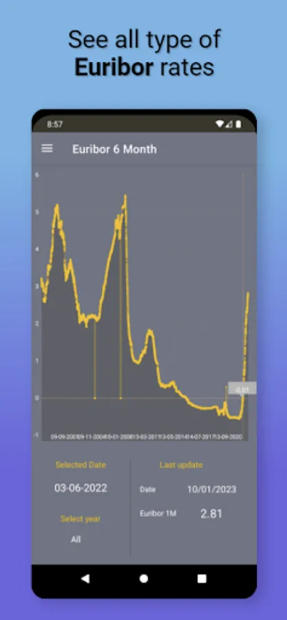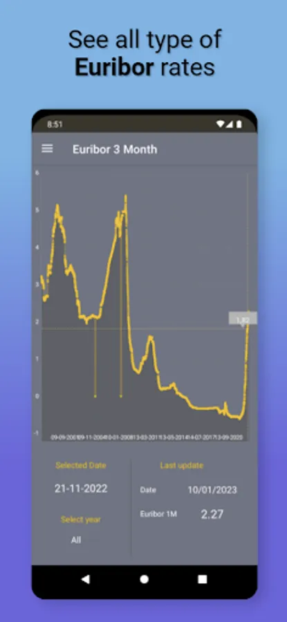 1. Track Euribor Rates: Access the latest Euribor rates and historical data for different Euribor types (1m, 3m, 6m) with ease.