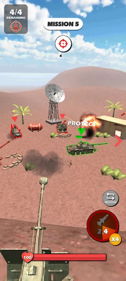 Use artillery to destroy enemy vehicles. Choose the best weapon !