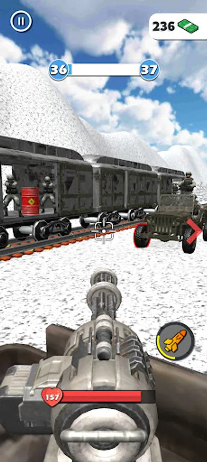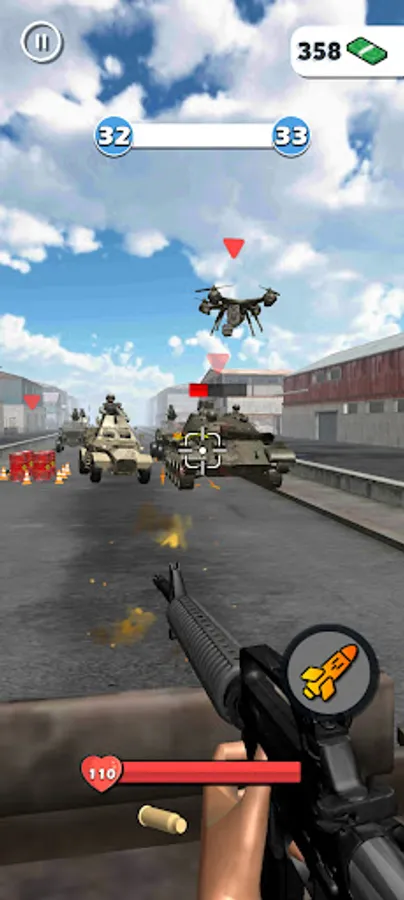 Welcome to "War Vehicle Defender", the thrilling new mobile game that puts you in the driver's seat of an action-packed vehicle chase. In this fast-paced game, you'll take on the role of a skilled shooter as you fend off enemy vehicles pursuing you.