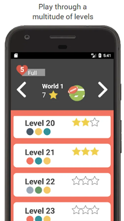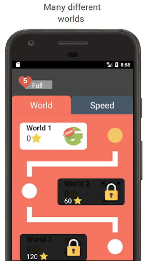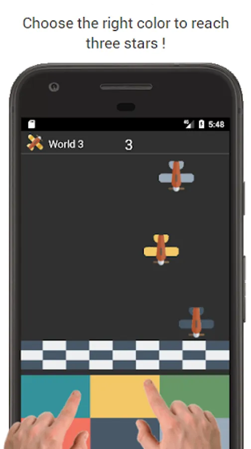 This application offers several worlds composed of a multitude of levels. Objects come down in different colors. Le goal is to click on the right color so that the finish lane matches the color of the object.