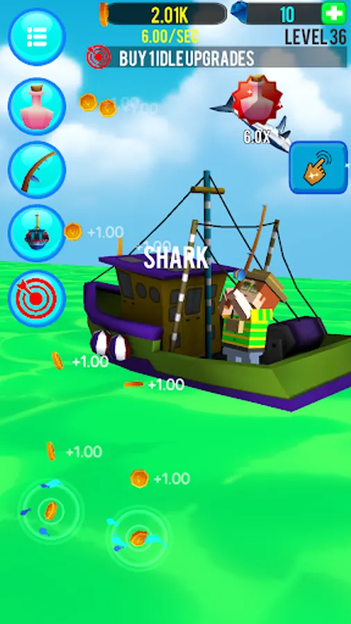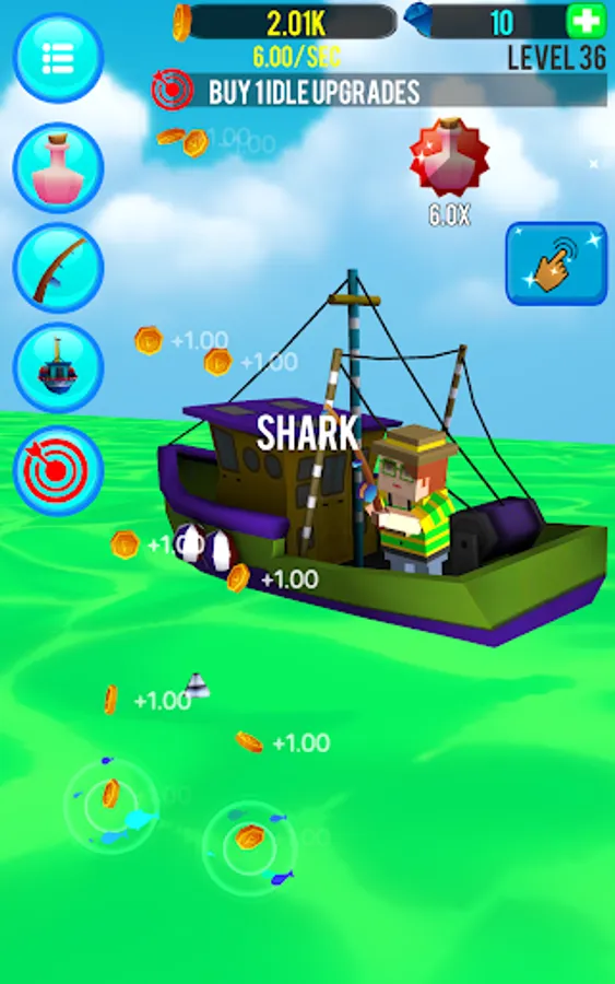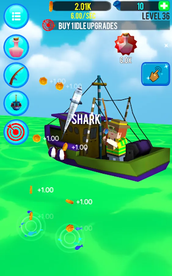 Don't know the first thing about fishing? No worries! Experience the thrill of catching bass and even sharks with just a simple tap. Cast your line, reel in the rewards, and invest wisely to unlock upgrades that enhance your fishing prowess.