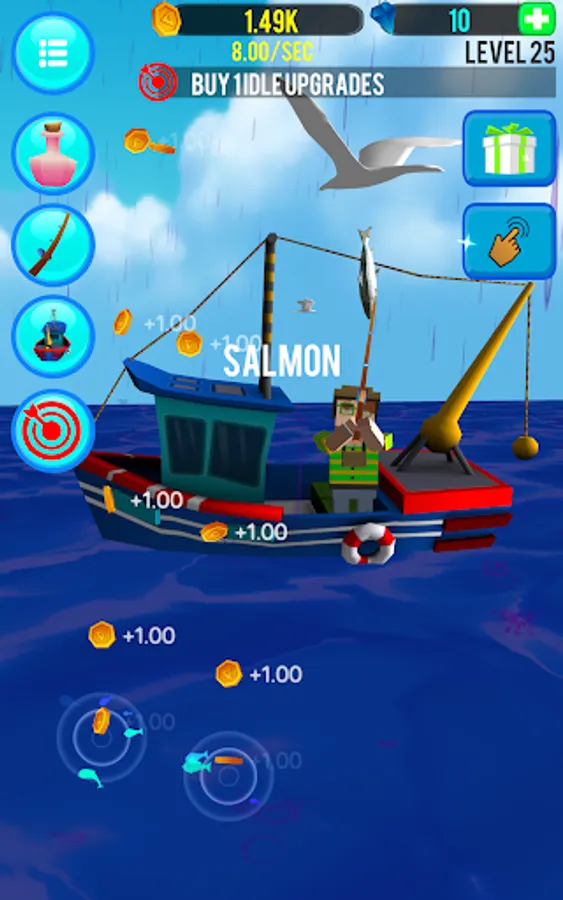 - Addictive Clicker Fun: Immerse yourself in the captivating world of fishing through an addictive idle clicker experience.