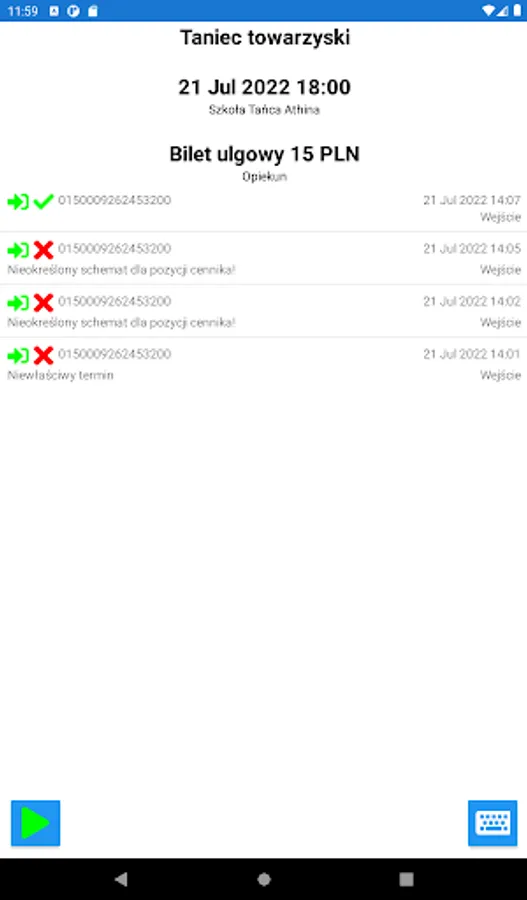 - Support for offline ticket scanning - synchronization of codes with the server for verification, and subsequent sending of information about checked tickets,