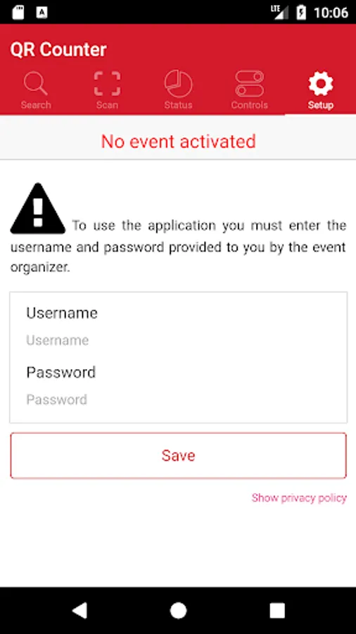 To use this app you have to previously request a username and password through qrcounter.com website.