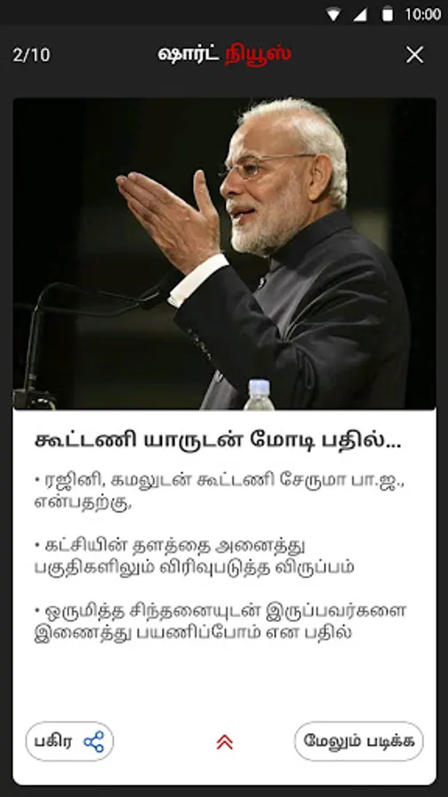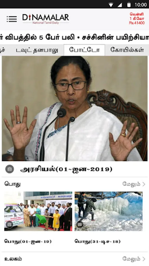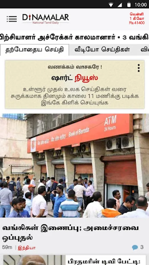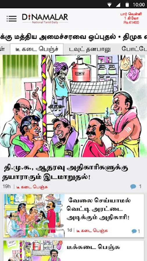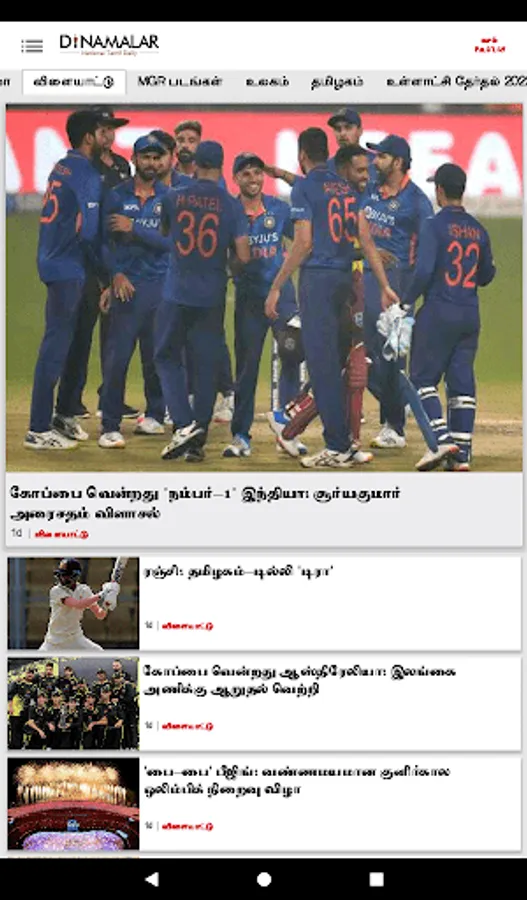 Dinamalar Android app gives you latest Tamil news from Tamil Nadu, India, World & Latest district news in Tamil, Tamil Cinema news, Tamil Movie Reviews, Latest Sports News in Tamil & live cricket score, Business News in Tamil & NSE/BSE market update, Rasi palan and photo gallery & video - News, Trailer… with some unique Android user experience.