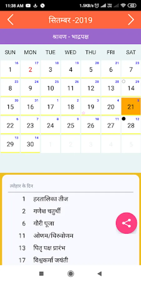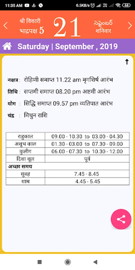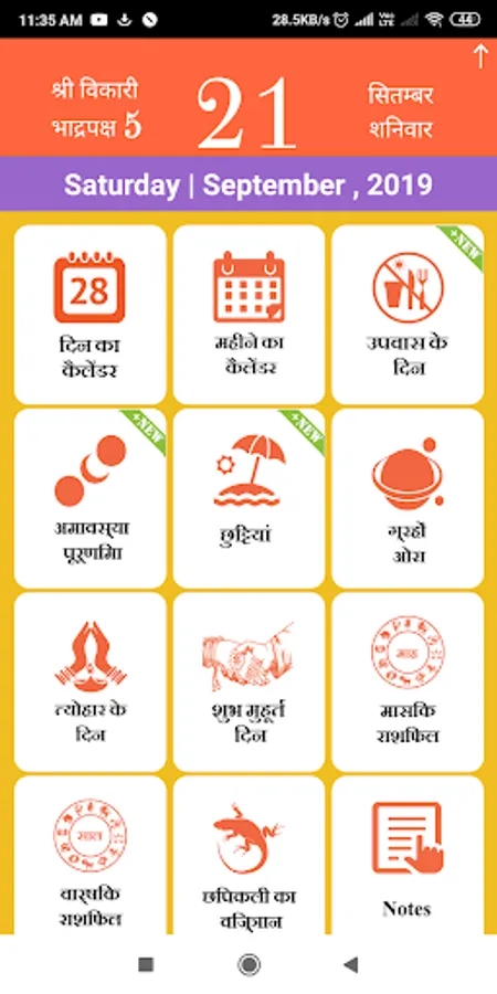 We are happy to release Subam Hindi Calendar for the year 2019 with a number of user friendly and easy to use features. Hope the app will satisfy the user's needs and will help the user with more additional options such as Daily panchangam, rasi palan, auspicious days, city's weather etc. We are striving to provide the best possible app with each updates with the help of user's feedback and latest features. Thanks for downloading.