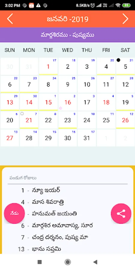 We are happy to release Subam Telugu Calendar for the year 2019 with a number of user friendly and easy to use features. Hope the app will satisfy the user's needs and will help the user with more additional options such as Daily panchangam, rasi palan, auspicious days, city's weather etc. We are striving to provide the best possible app with each updates with the help of user's feedback and latest features. Thanks for downloading.
