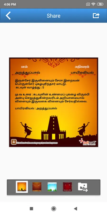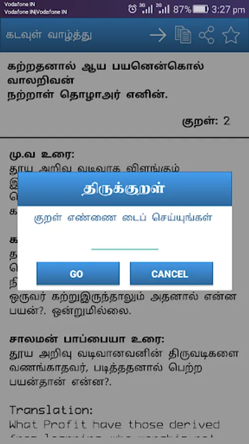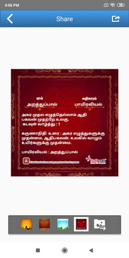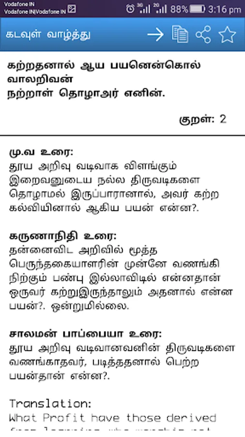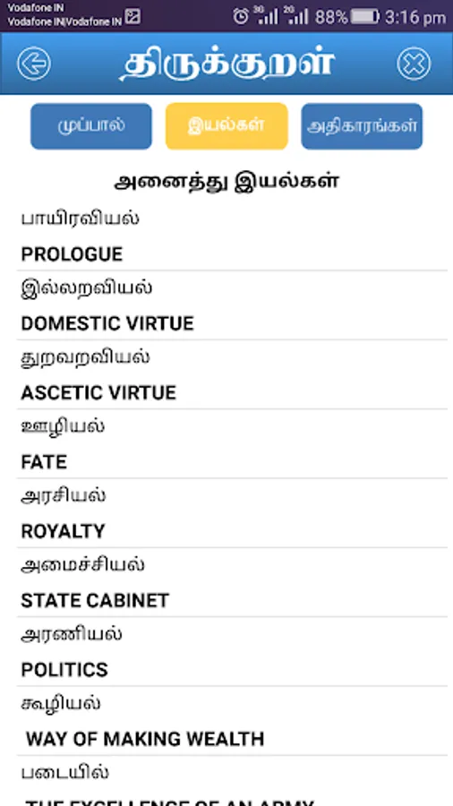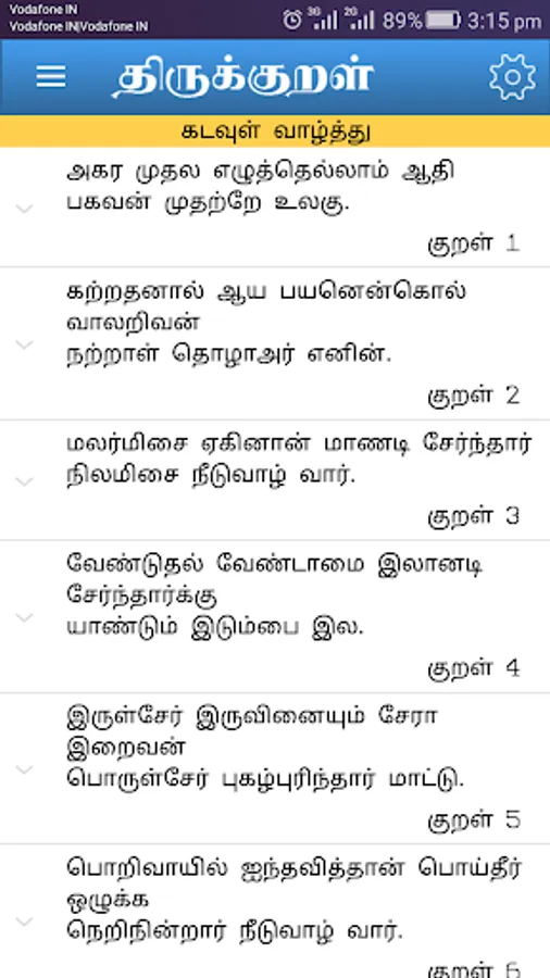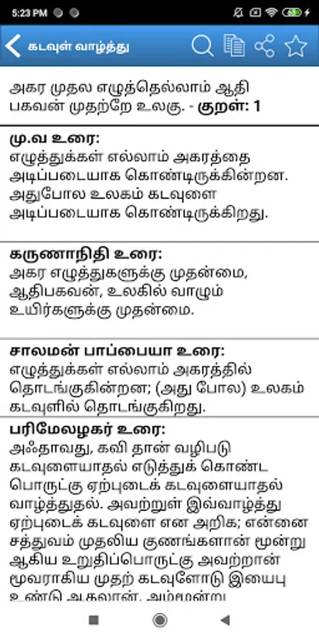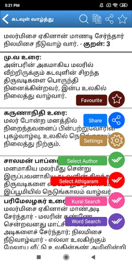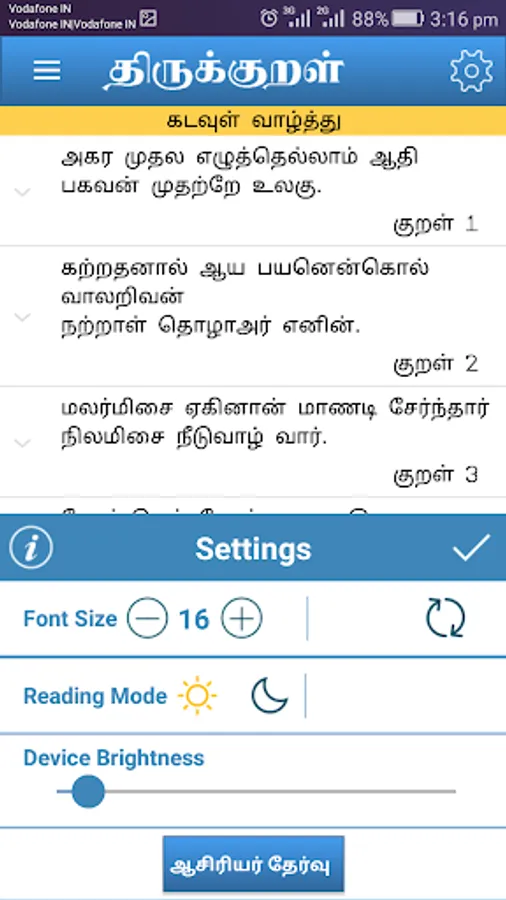 The Tirukkural App is designed to be more user friendly and more effective to enhance reading of Thirukkural. The app has a number of features as follows to make reading easy & comfortable:
