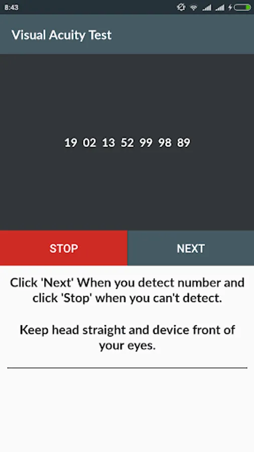 Keep head straight and device front of your eyes.