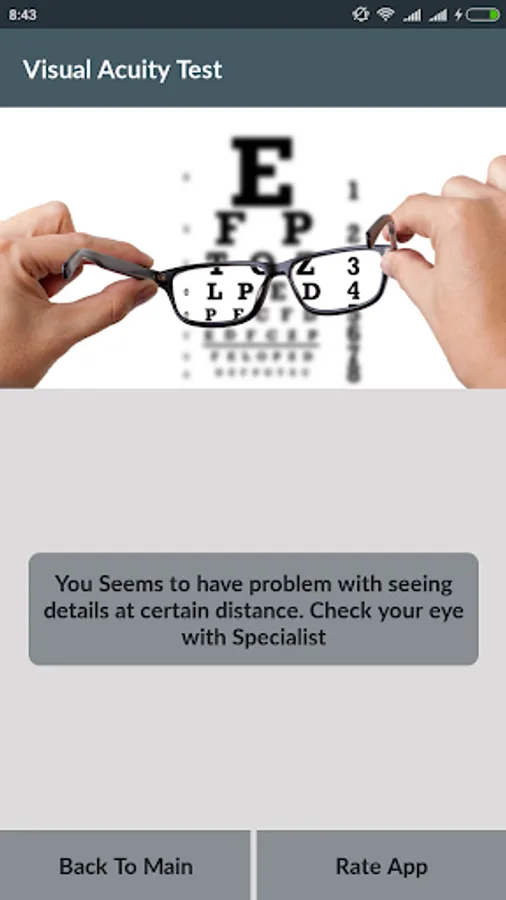 This app helps to detect your eye have above problem or not. Eye Vision Test is simple application which only helps to find out your eye visioning capacity.