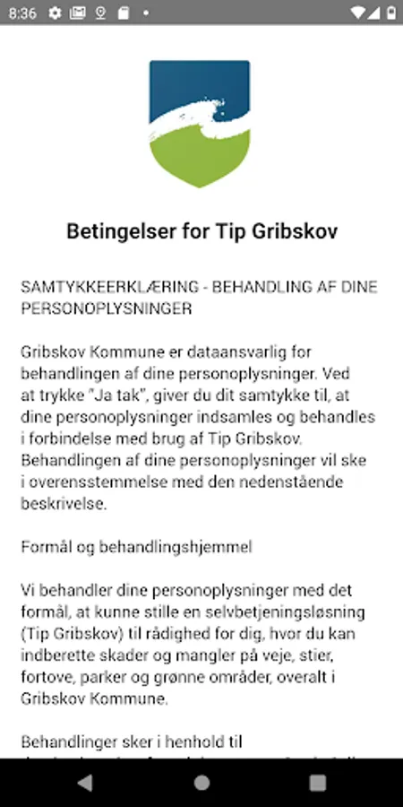 When you give out personal information with your tip, you agree that data is stored by Soft Design A / S and shared with Gribskov Municipality.
