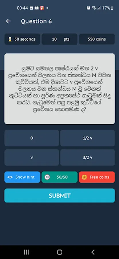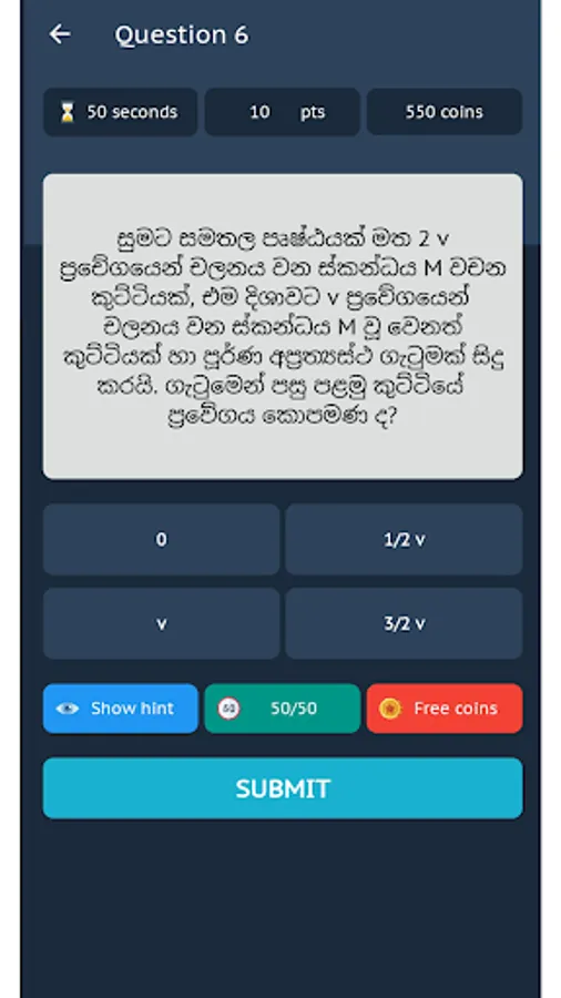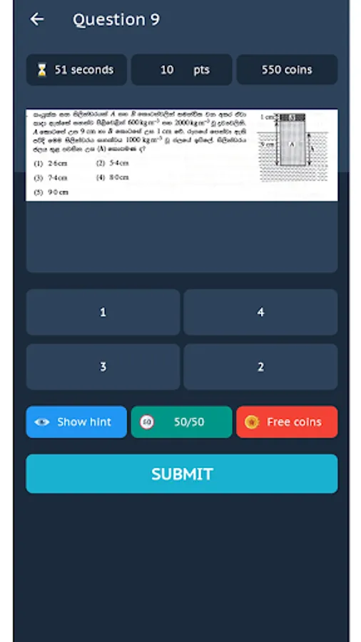 - Students can use 50/50 or Show Hint Option to help them to answer questions.