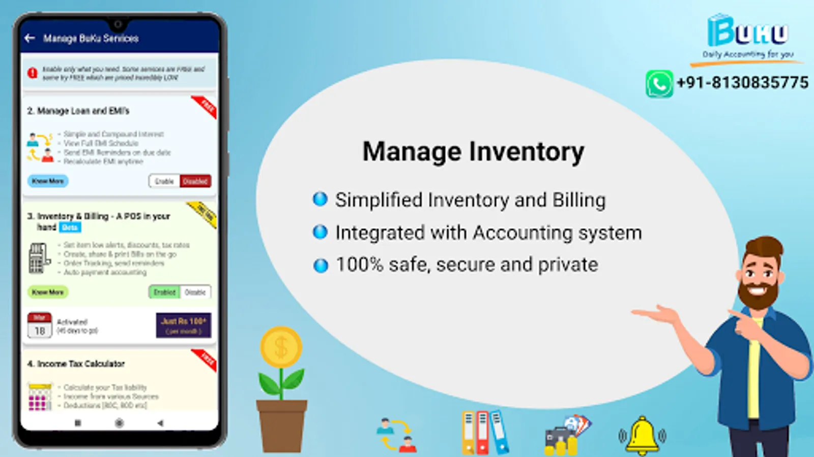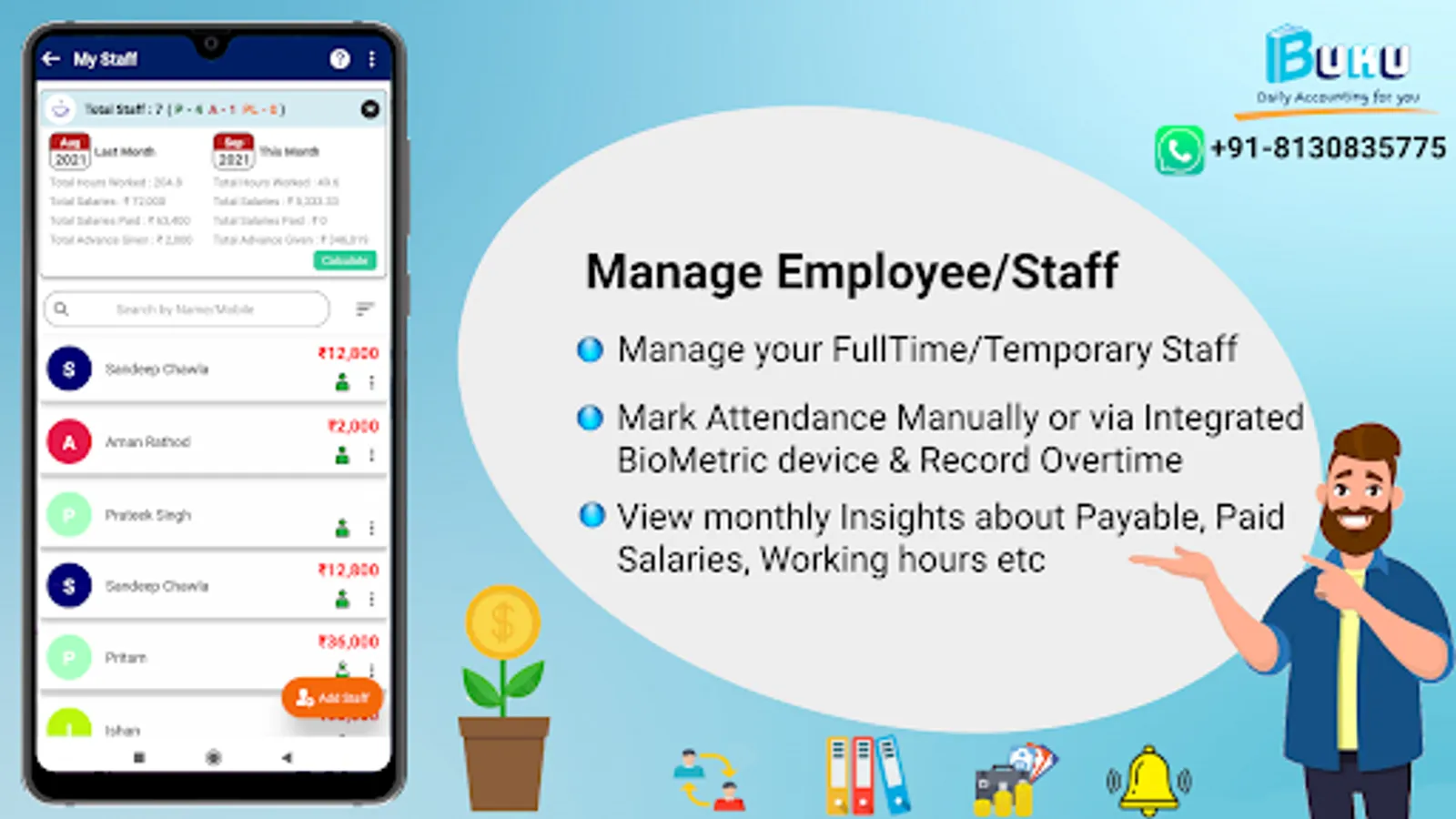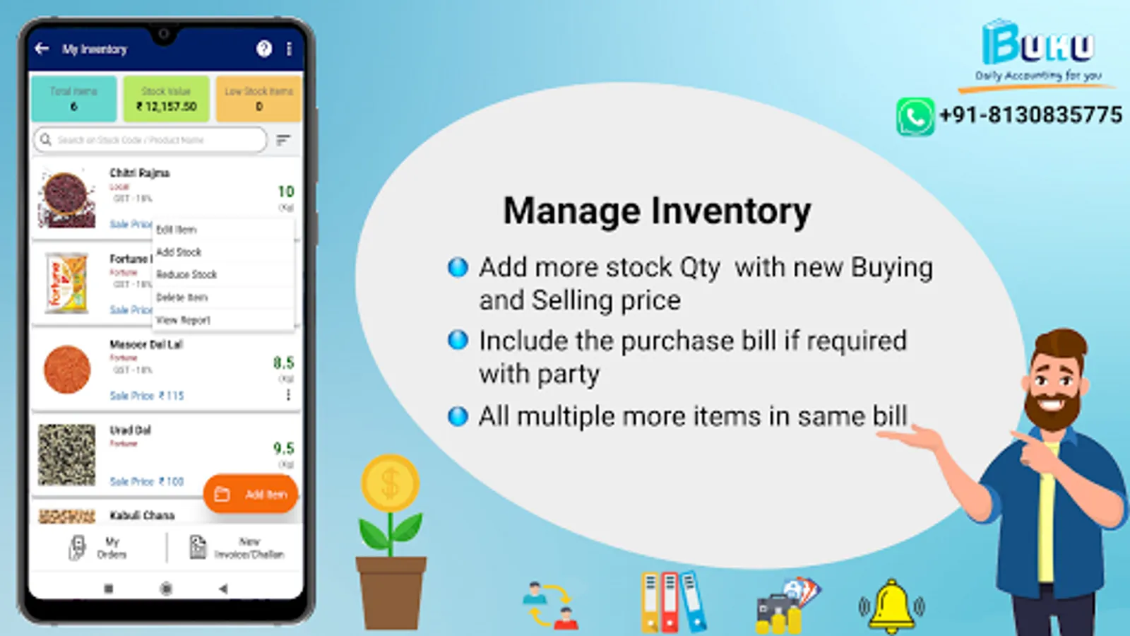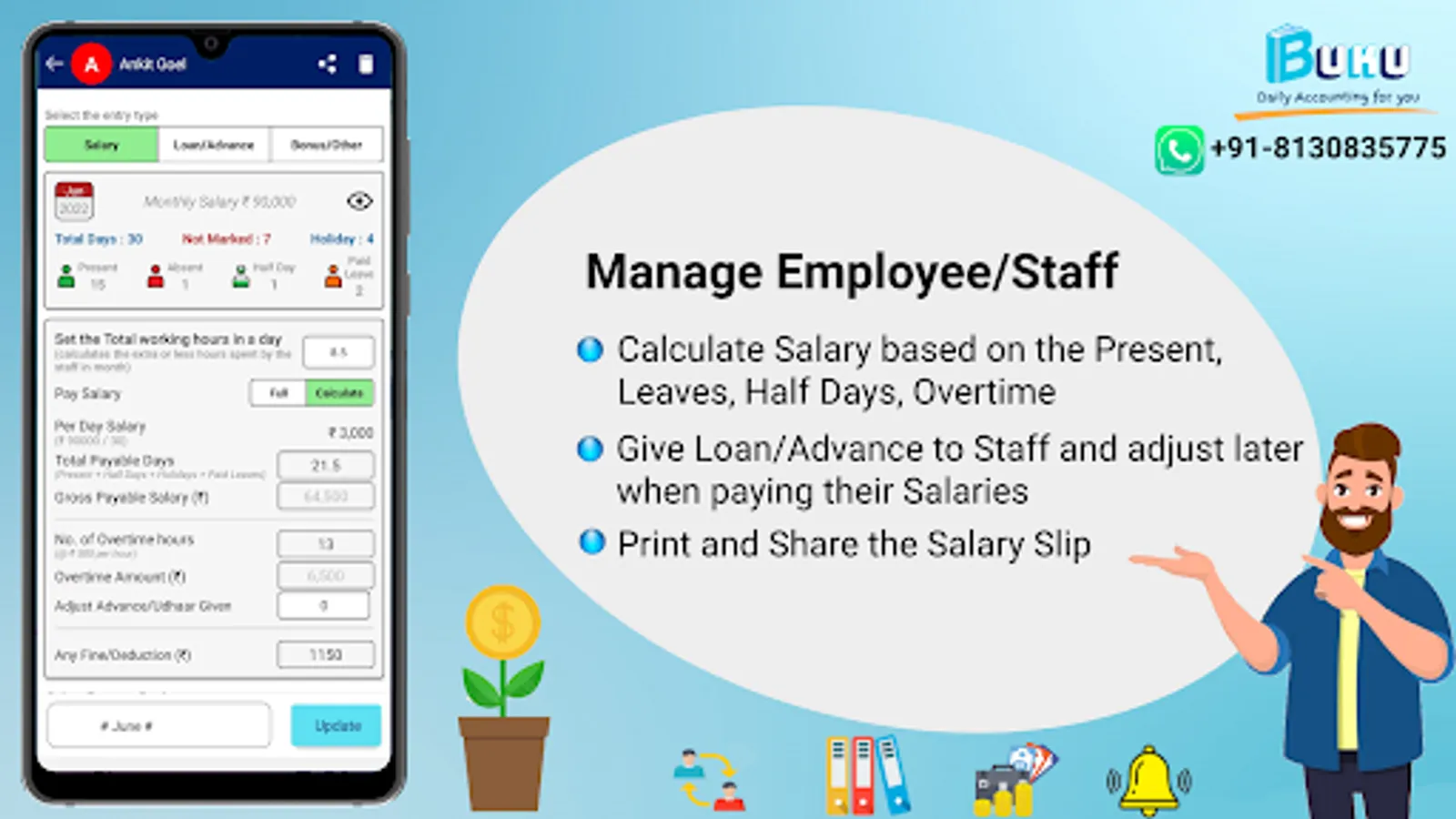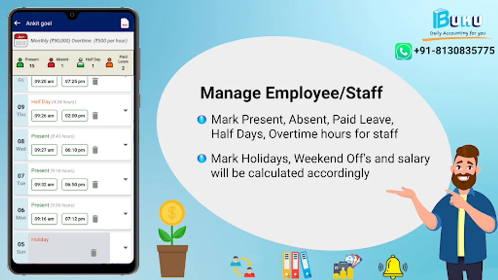 You don’t need to use multiple apps like expense tracker, invoice maker, bookkeeper/khata/ledger, inventory manager, hrms for employee management. All this can be managed from our allrounder app – BuKu.