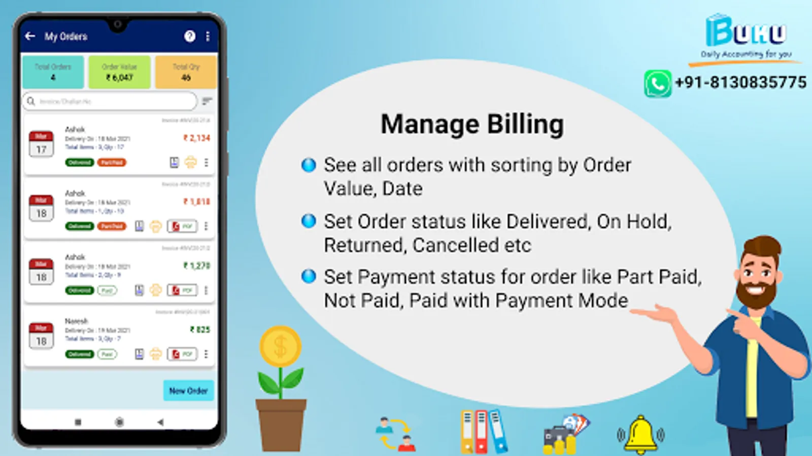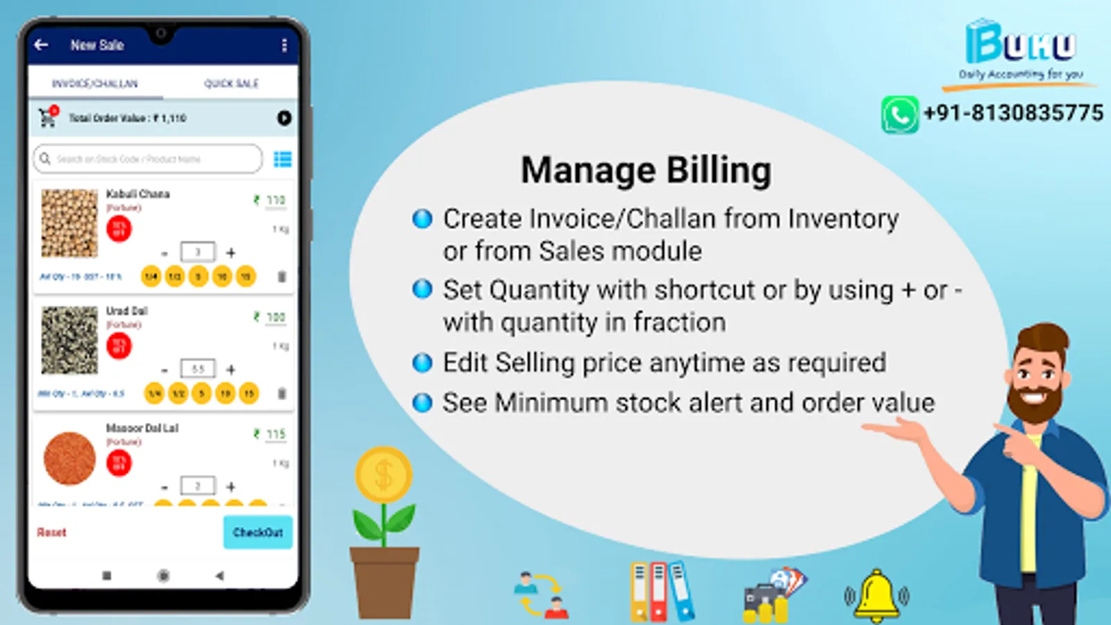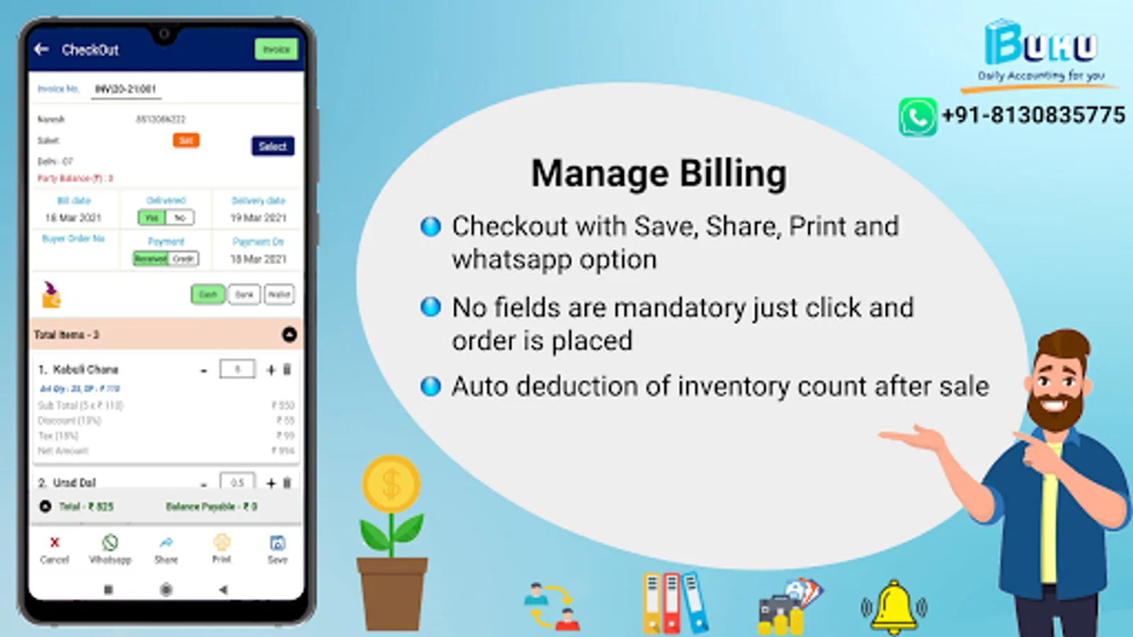 Buku is an All-in-One Business app to run business from anywhere and stay in control. You can manage Online invoicing, expense, profit and loss, cashflow, Khata, manage Multiple Stores. It is a perfect POS billing software for retail shop management. You can Send payment reminders to customers.