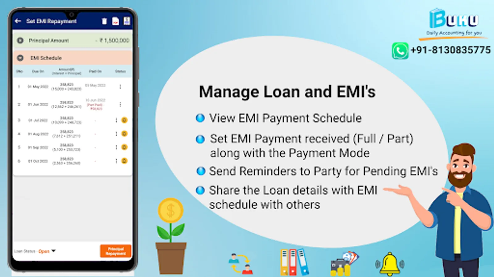 BuKu is also Loan management software and provides emi reminder, loan manager, emi calculator.
