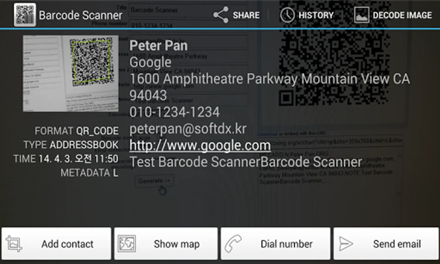 As well as the "Barcode Scanner" is a QR code or barcode images can be created.