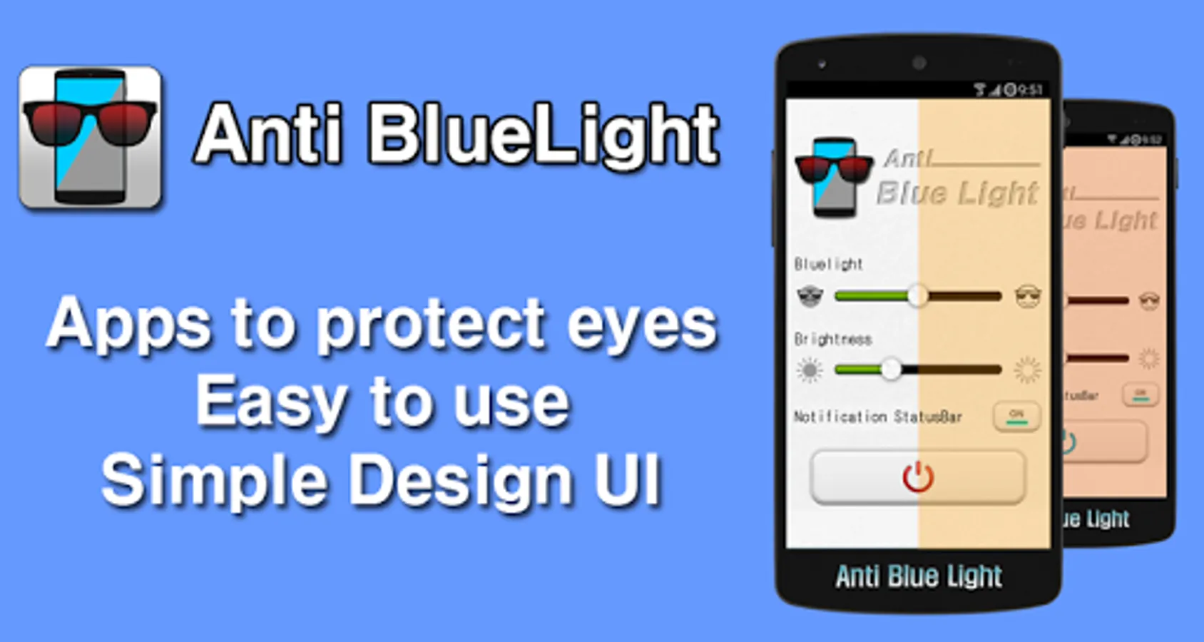 Eye strain while using the smartphone, giving off blue light and a screen filter application.