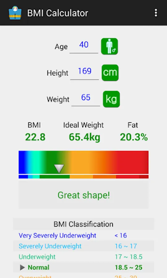 Exercise, diet and body mass index (BMI) to manage the age, height, weight, gender, you can enter and see the results.