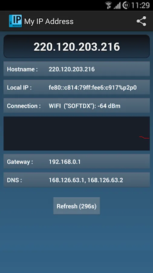 My network is a simple application that shows the IP address.