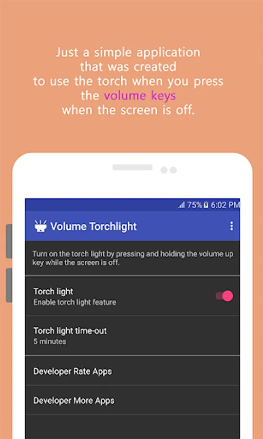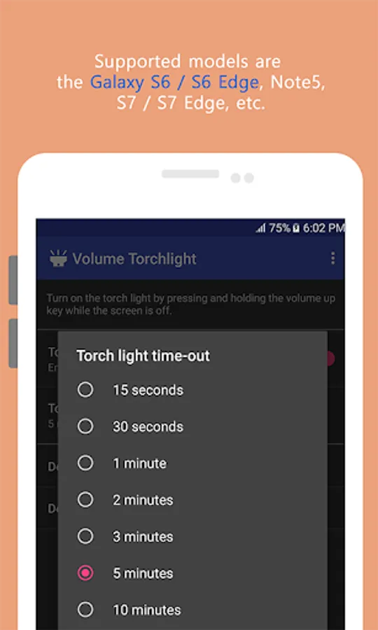 Enables torch when pressing the volume up key when the screen is off. And, what is great with this app is that it does not require root access on your Galaxy S6.
