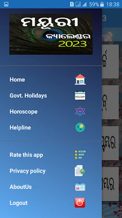 Odisha Govt official holidays also included in this Mayuri odia calender 2023 app.