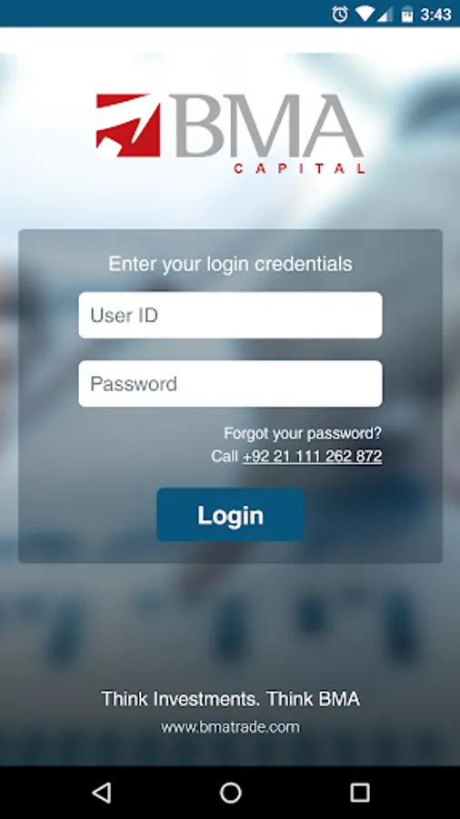 BMA Capital is proud to offer our Mobile Trading App. This application is exclusively for BMA clients for trading at The Pakistan Stock Exchange. Our robust application provides a user-friendly experience, you can get real-time streaming quotes, place orders, manage your account, and more—all from the palm of your hand. No matter where you are, BMA ensures you are connected to your trading account at all times.