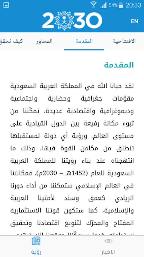 Application regard the latest news and information about the vision of the Kingdom of Saudi Arabia 2030
