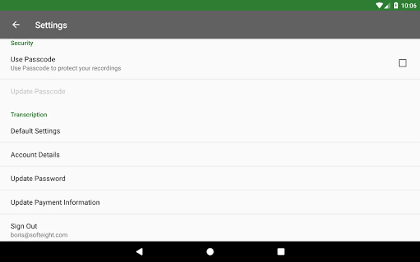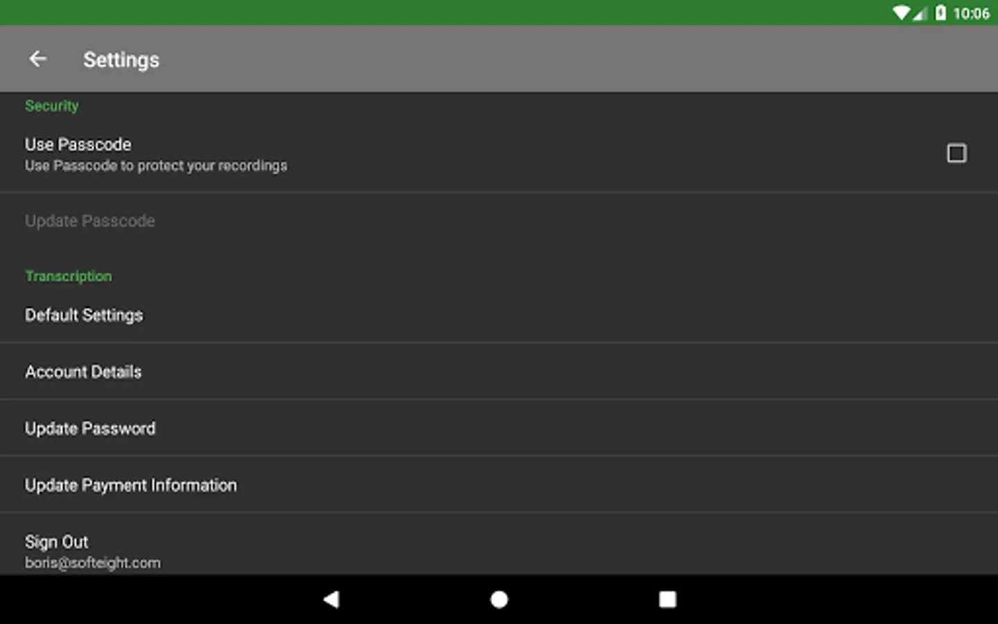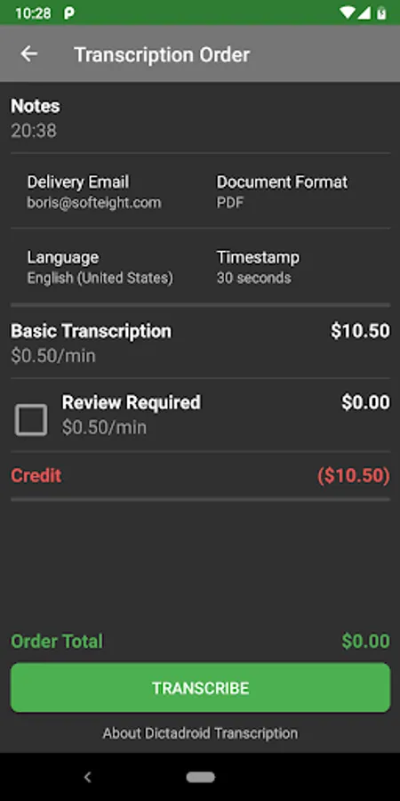 With the latest version, you can now have the recordings transcribed into text documents in more than 120 languages and in a document format of your choice. Create an account and get $20 credit to try the transcription service for free. Learn more about the transcription service at http://www.dictadroid.com/Transcription/About.html