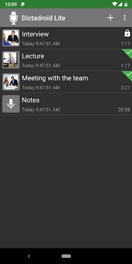Dictadroid turns your Android phone or tablet into a professional, high-quality dictation machine and voice recorder. Use it to record voice dictations, notes, meetings, music, or any other audio and share it via Email, FTP, Box, Google Drive, or Dropbox.