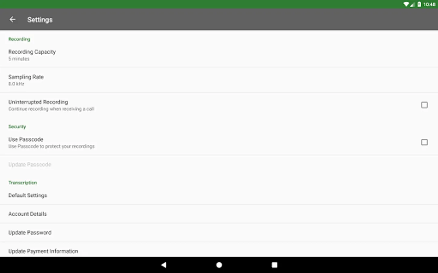 With the latest version, you can now have the recordings transcribed into text documents in more than 120 languages and in a document format of your choice. Create an account and get $20 credit to try the transcription service for free. Learn more about the transcription service at http://www.dictadroid.com/Transcription/About.html