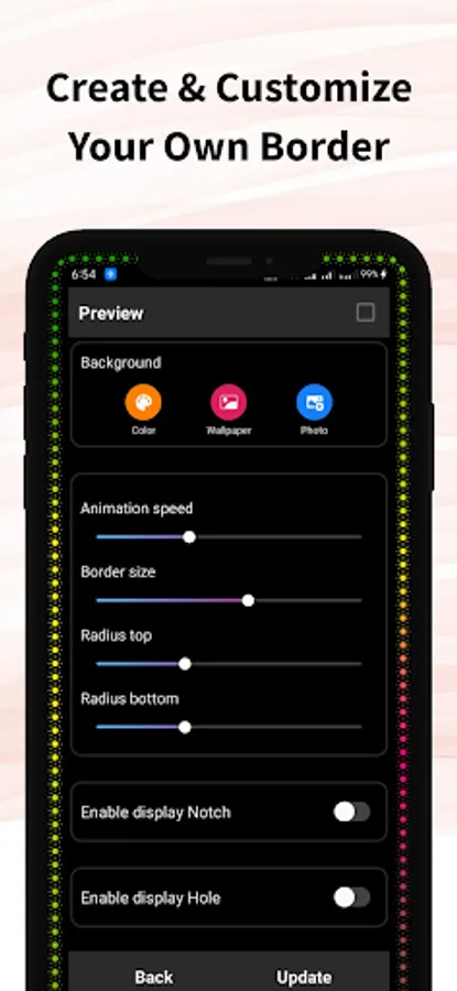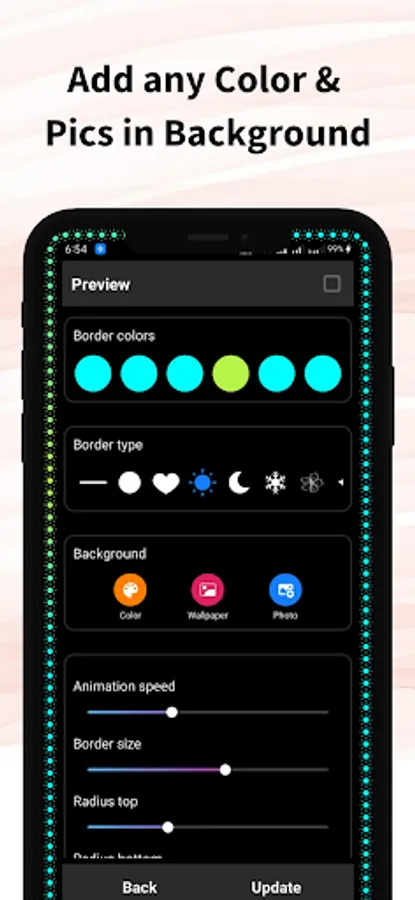 ★ Adjust animation speed, border size, top & bottom EDGE radius & many other settings