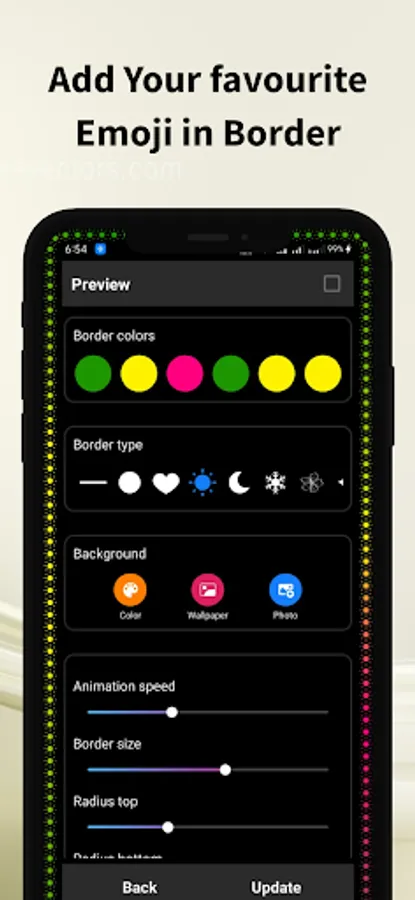 ★ Choose Border Type - Emojis, Stickers, Dot, Heart, Diamond, Stars and 100+ other amazing styles and shapes