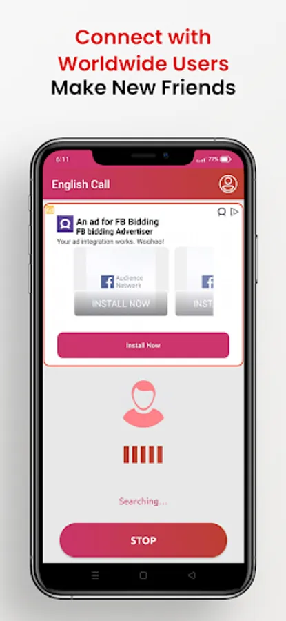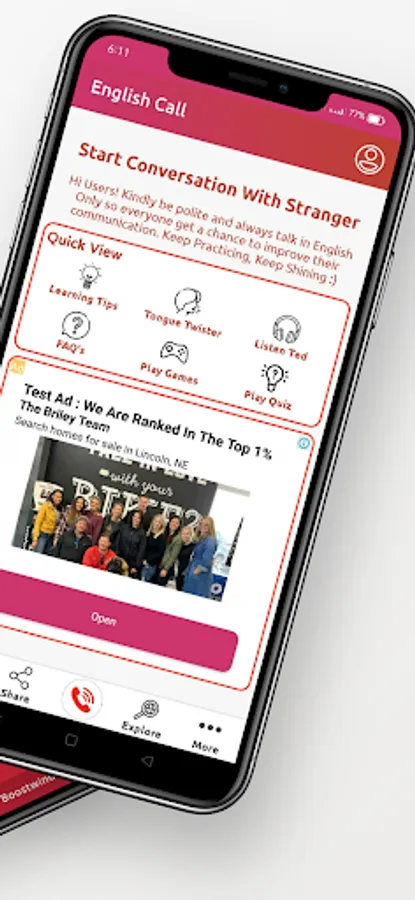 "English call" English Speaking practice app allows you to talk with worldwide strangers which will help you in improving your English speaking anywhere any place.