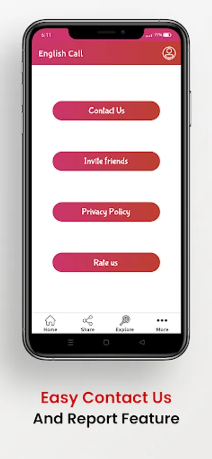 • Your safety is our priority. So there is no any live video chat option in this English call app. so you can enjoy a healthy live audio chat.