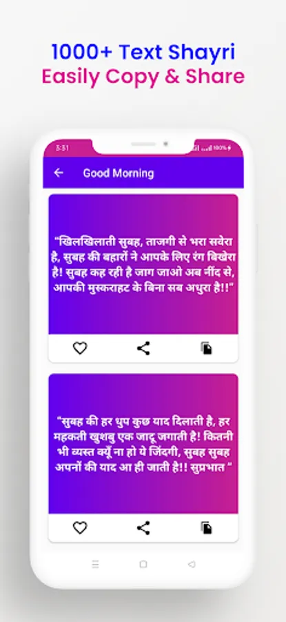 There are multiple format available in Shayari app. You can read text format and copy text to share on your social media account.
