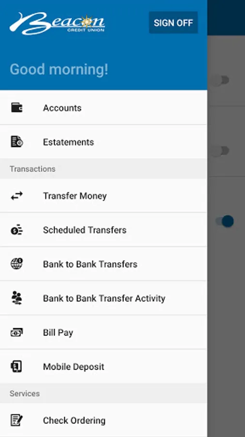 Beacon Mobile Banking allows you to check balances, view transaction history, transfer funds, and pay loans on the go!