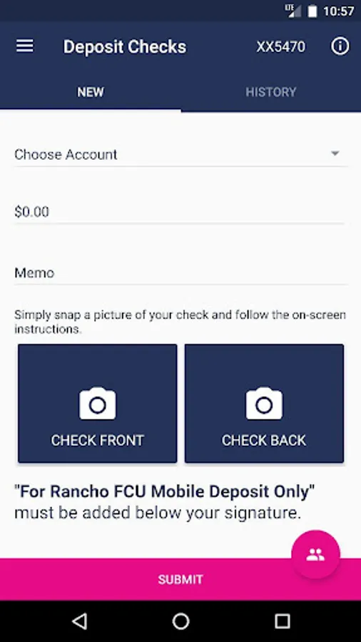 Rancho FCU Mobile Banking allows you to check balances, view transaction history, transfer funds, deposit checks, pay bills and pay your Rancho loans on the go!