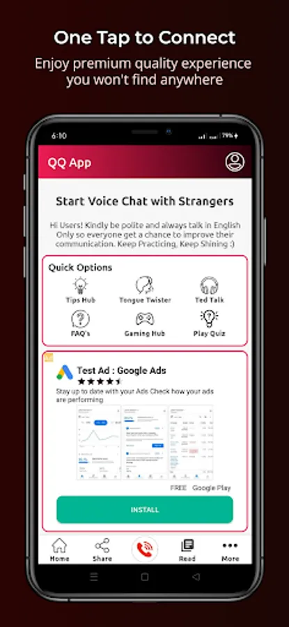 QQ- Random Voice Chat with Stranger – Random voice talk, stranger English voice call app provides the premium features free of cost. It never charges any single amount of money. You can easily talk to strangers on voice call at a single tap. You can easily start live voice calling with strangers free and meet new people worldwide and can discuss anything that you would like to discuss as per policy and can experience the audio chat with strangers anonymous chat no login app.